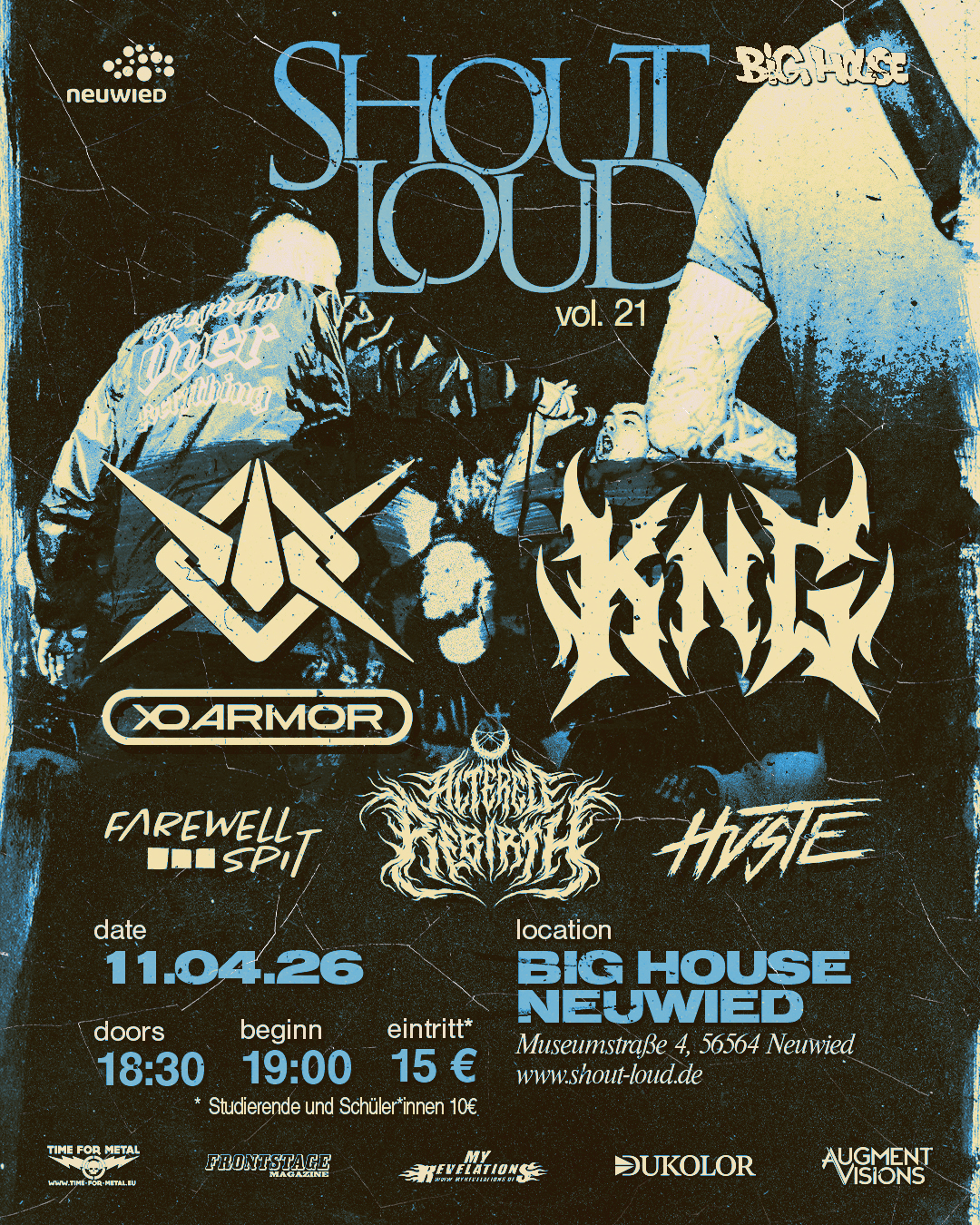 Das Line-up verspricht musikalische Vielfalt vom Feinsten: XO ARMOR, KING NUGGET GANG, FAREWELL SPIT, ALTERED REBIRTH und HVSTE werden den Abend zu etwas Besonderem machen. Wie immer also eine bunte Mischung aus lokalen Größen und überregionalen Highlights. Bereits ab 19 Uhr geht es los – wer von Anfang an dabei sein will, sollte pünktlich erscheinen.